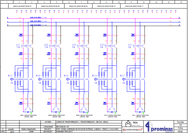 Conferência de diagramas, rota de cabos, proteções, seccionamentos e seletividade.