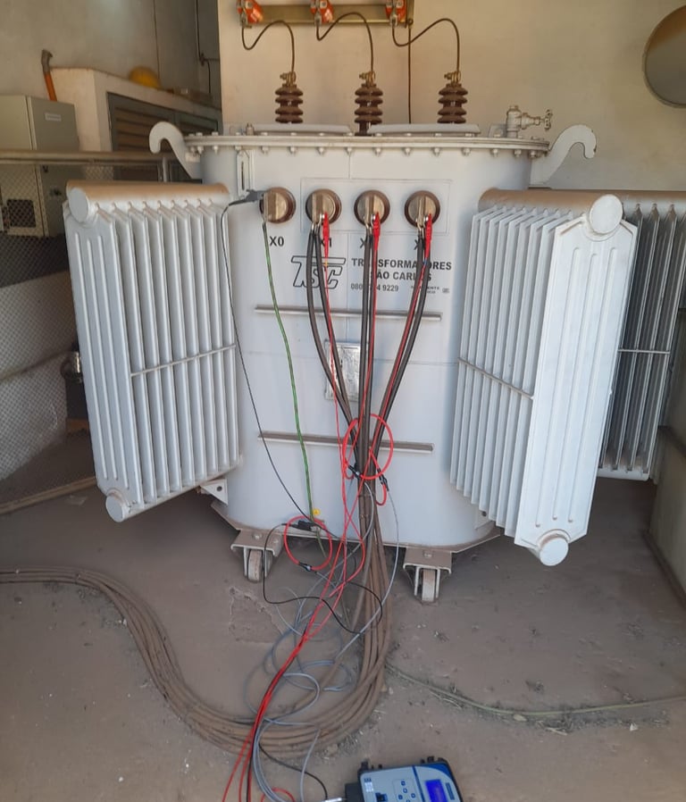 Ensaios elétricos: resistência ôhmica, relação de transformação (TTR), resistência de isolamento e perdas.